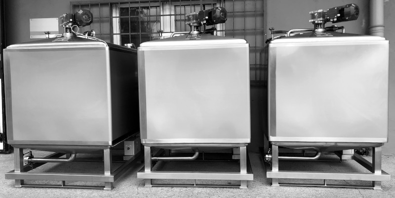 Projekt i wykonanie mobilnych zabiorników produktu. Charakterystyka Wykonanie stal nierdzewna. Płaszcz...